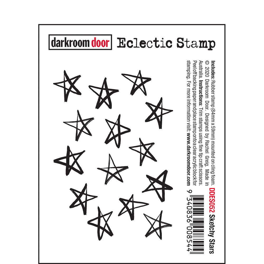 Darkroom Door Eclectic Stamps are mounted on cling foam. Suitable for card making, art journals, mixed media and more! Darkroom Door rubber stamps are known for their durability, deep etching and high image detail.