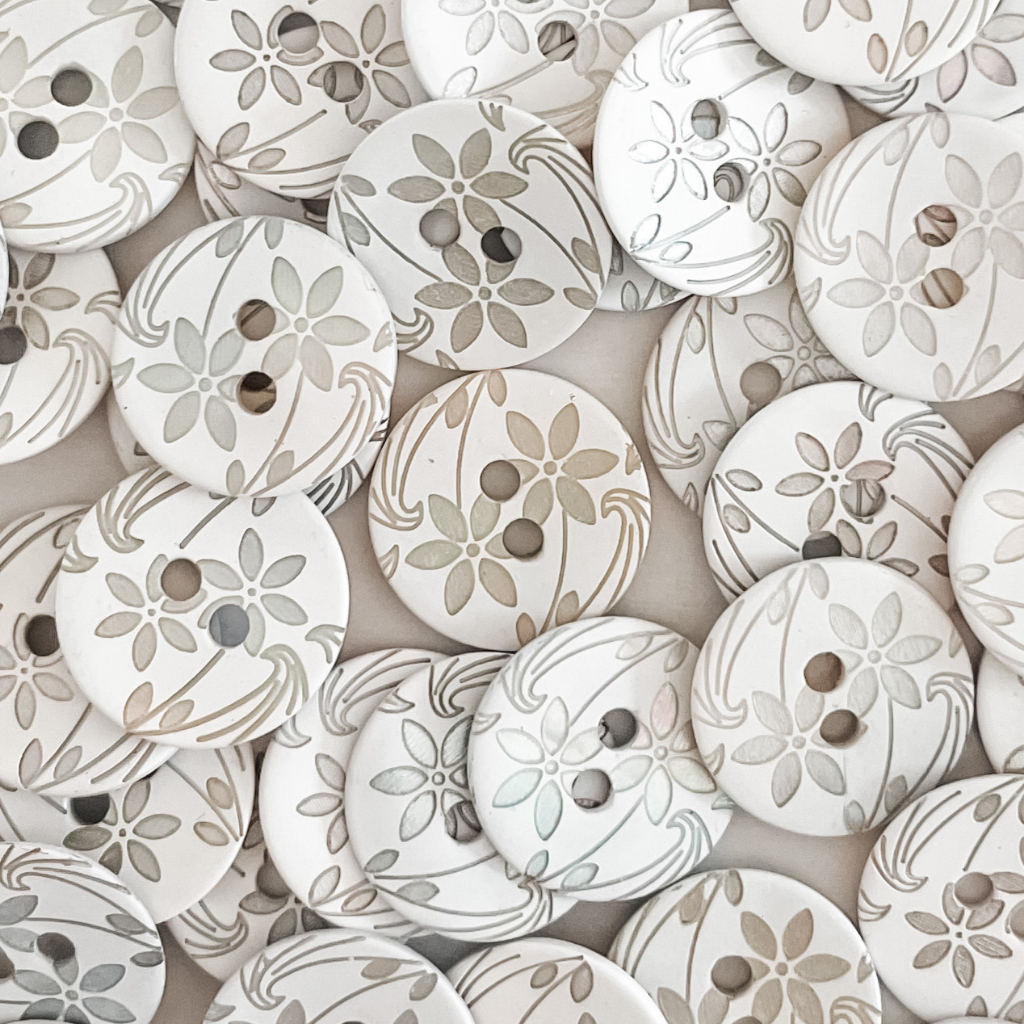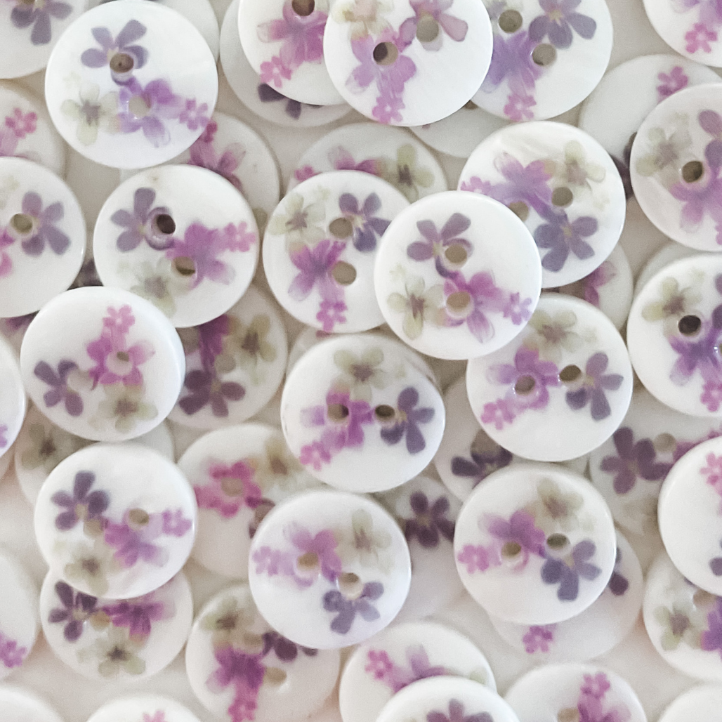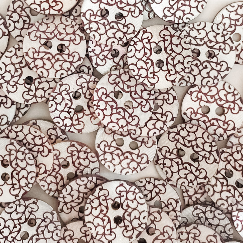 Add style and flare to your sewing, knitting, paper craft and home decor projects with these delicate mother of pearl printed buttons.